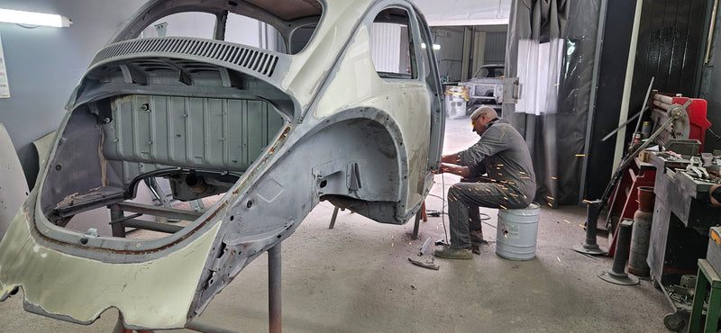 No restauro de automóveis clássicos, o trabalho de chaparia é fundamental para devolver ao veículo a sua estrutura e linhas originais. Cada painel é avaliado, reparado ou reconstruído com precisão, respeitando a geometria e os materiais da época. Este cuidado garante não só a integridade estrutural, mas também a fidelidade estética, preparando a base perfeita para as fases seguintes do restauro.